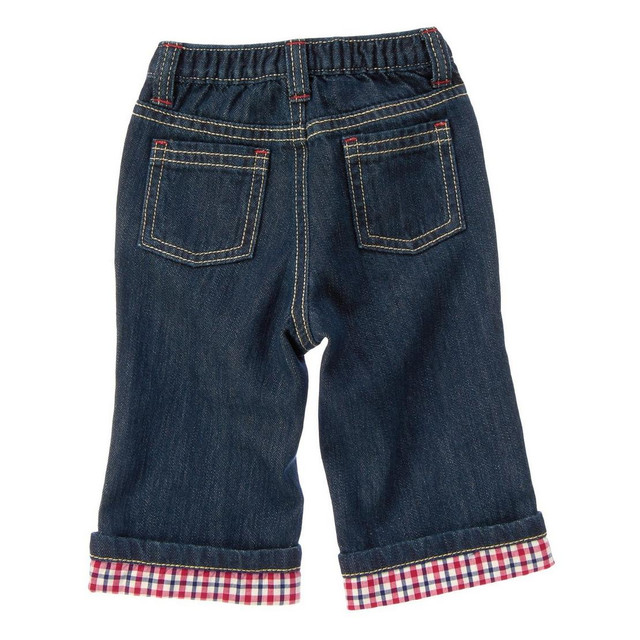 Низ штанин із манжетиками з картатої поплінової тканини.